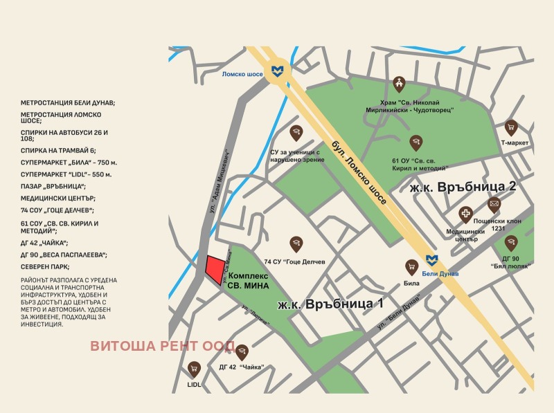 Предлагаме чисто нов, напълно обзаведен двустаен апартамент в нова сграда в кв.Връбница-1 .Жилището се намира в нова тухлена сграда с акт 16 от 2025г, на тиха и спокойна локация, на пешеходно разстояние от метростанция, спирки на разнообразен градски транспорт, множество супер и хипермаркети, магазини, училище, детска градина и други.