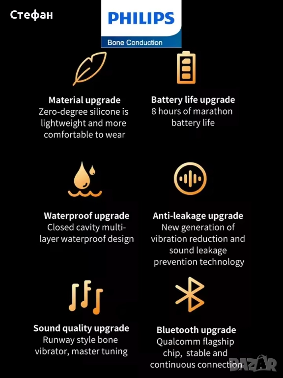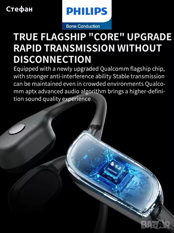 Philips TAA3609 Bone Conduction conducting handsfree Слушалки с костна проводимост като Shokz → Обява 52666844