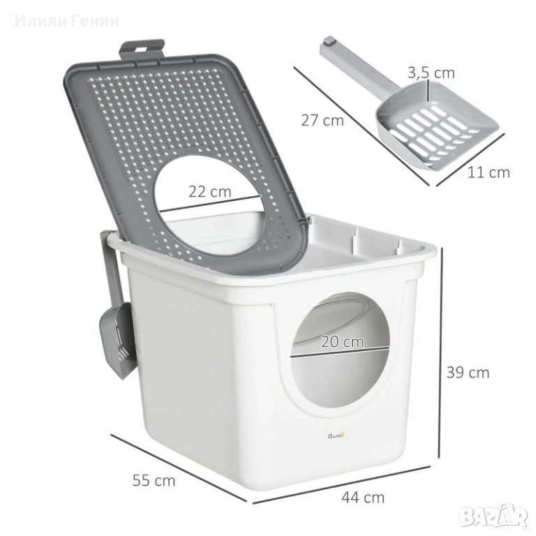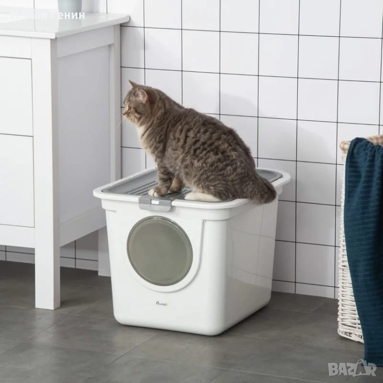 кутия за котешка тоалетна, двустранна кутия за котешка тоалетна, вкл. лъжичка за тоалетна, бяла + сива - 80.00лв.