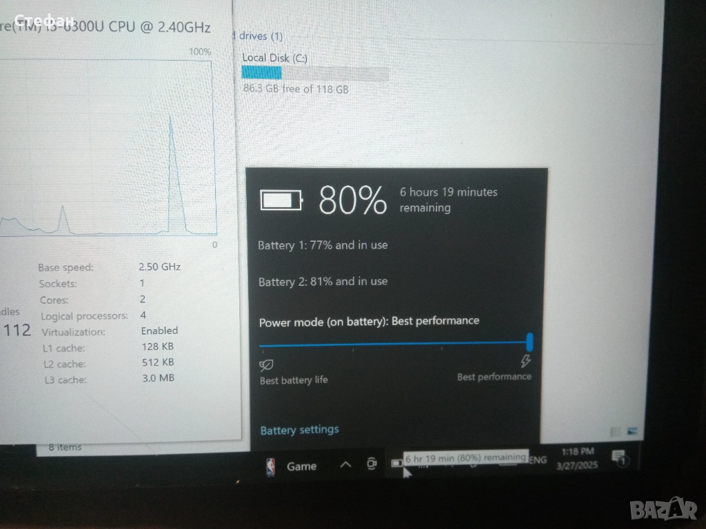 Лаптопа е без дисплей, иначе работи. Идва с клавиатура.