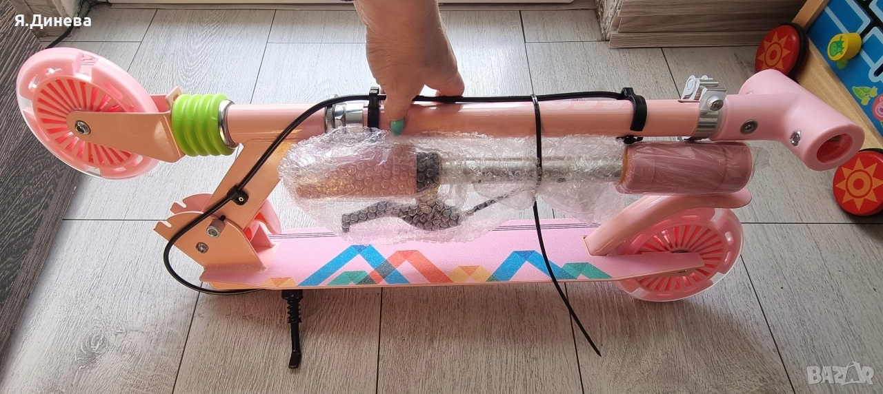 Продавам 2 бр детски тротинетки за момиче и момче,чисто нови не са използвани изобщо. Имат 2 вида спирачки както ръчна така и с крак. Ръчната спирачка е на кормилото, гумите когато се въртят светят,има степенка и кормилото може да се регулира височината. Внос от Германия цената е за брой.