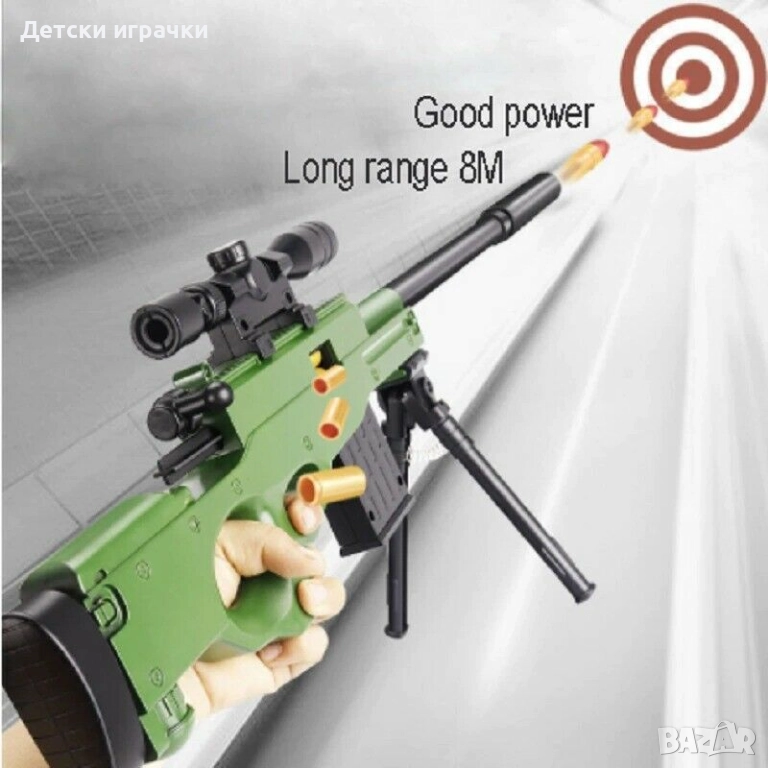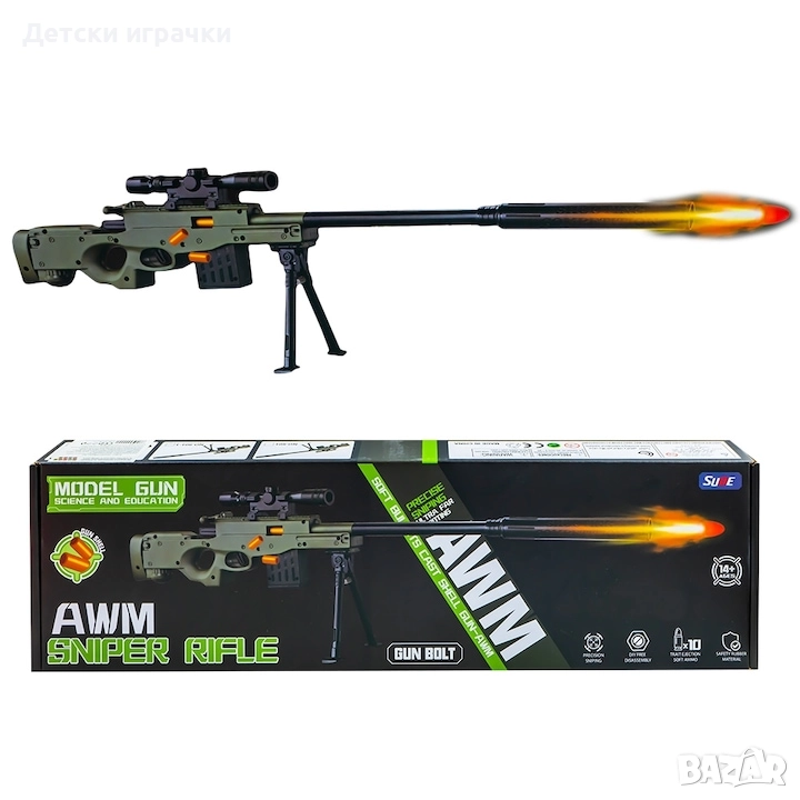 Голяма пушка снайпер с мерник и 10 патрона 69см, 14+ години