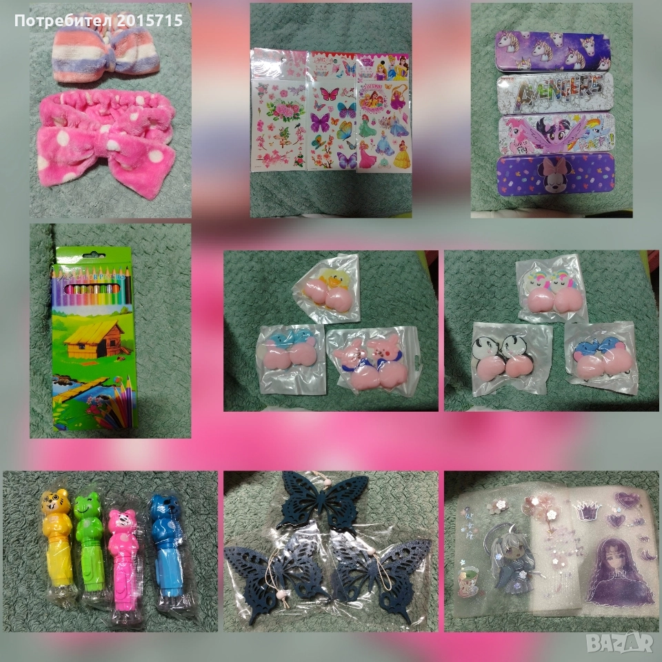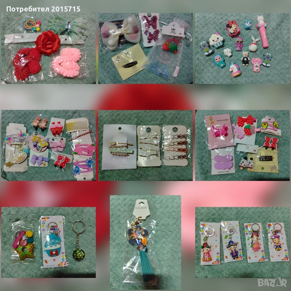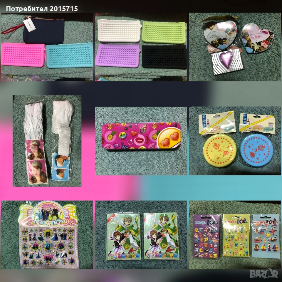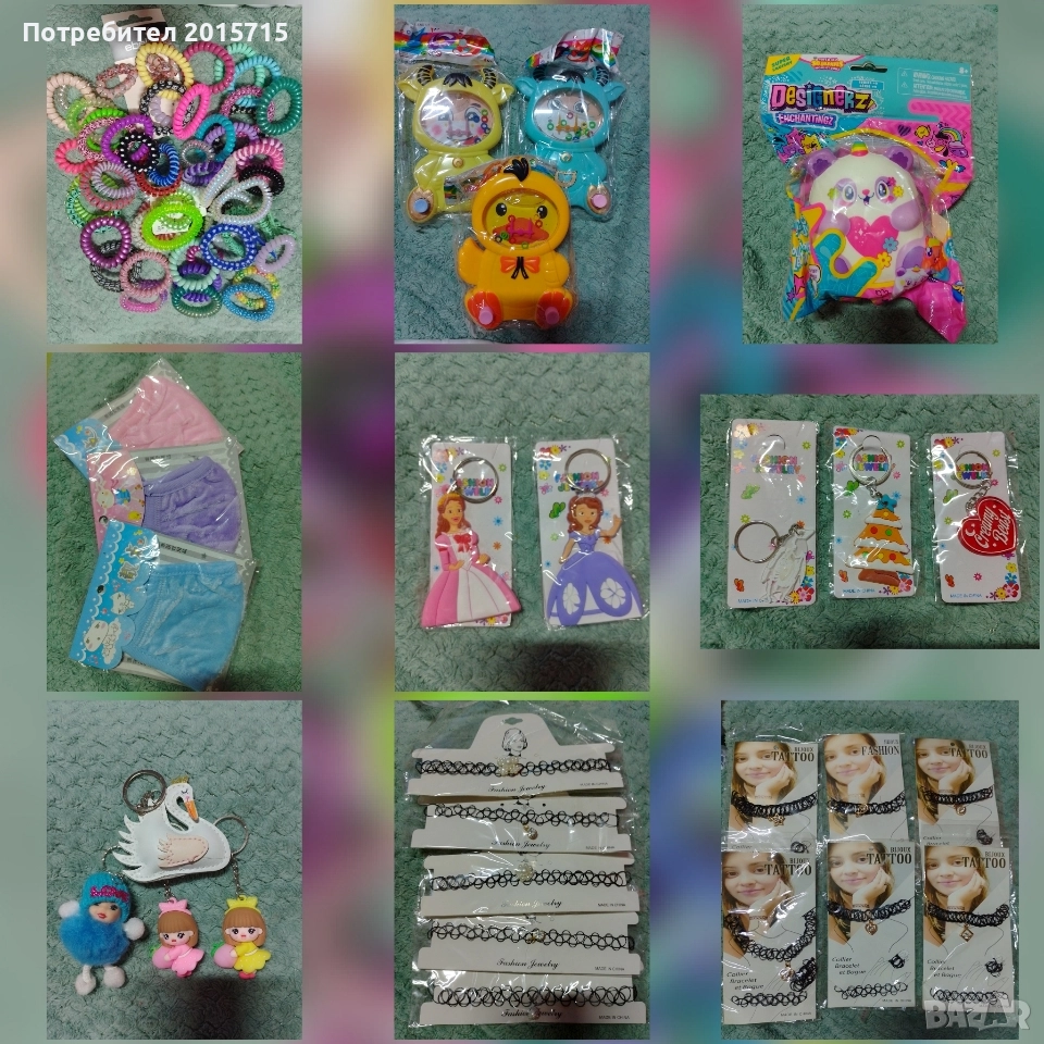 Всякакъв вид аксесоари, играчка, бижу, протмоне, канцел. материали, малък подарък, чантичка, стикери, ластичета, моливи, несесер, скуиши и др..