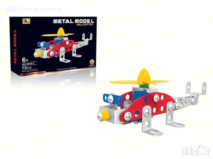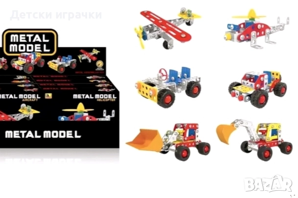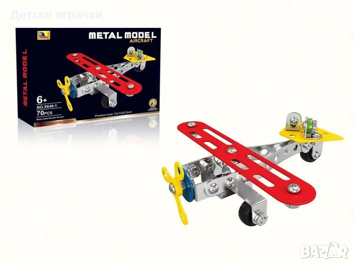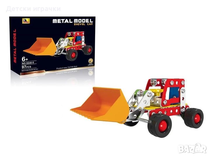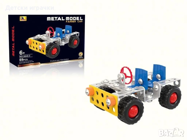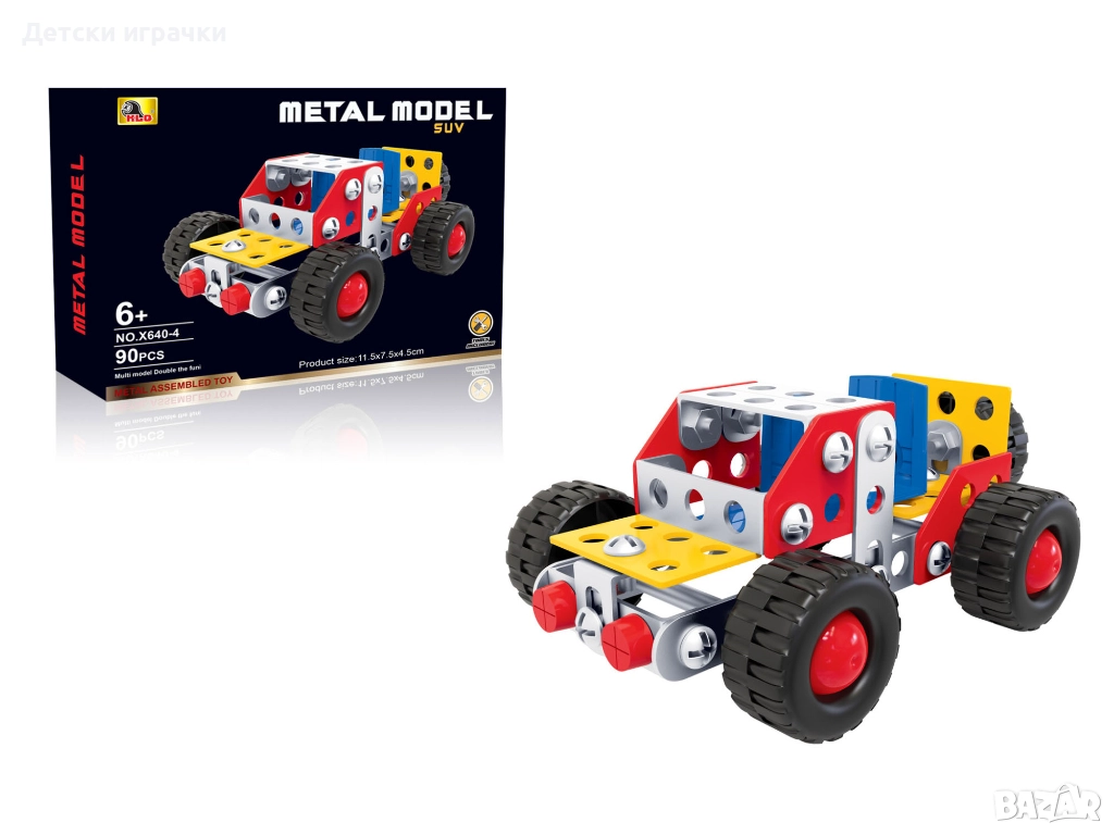 Детски метален конструктор за сглобяване с винтове и гайки с над 90 части. Гладки линии за моделиране, налични са аксесоари, въртящи се колела, които могат да се движат.
