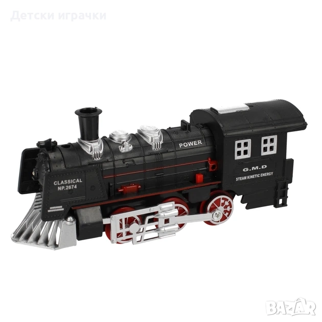 Комплектът включва: релси, вагони, 1 локомотив и аксесоари за влак.