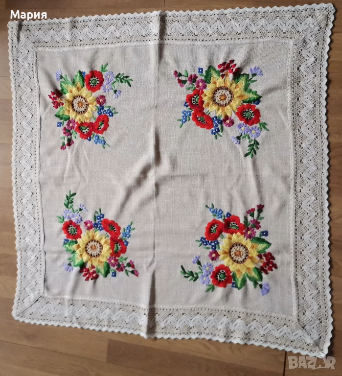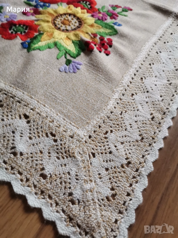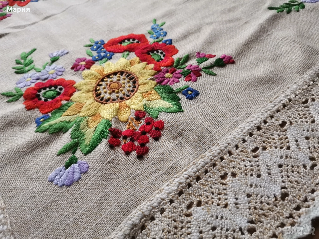 Покривка за маса с бродирани флорални елементи → Обява 52668854