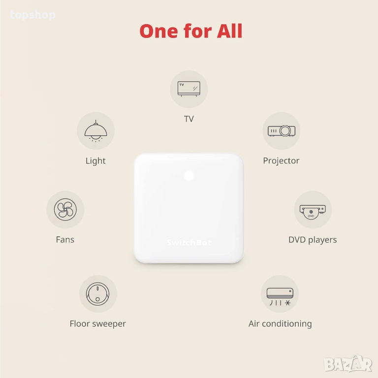 „Едно за Всички“ (One for All): Чрез вградения IR предавател, той може да ”научи” и имитира сигналите на вашите съществуващи инфрачервени дистанционни управления за климатик, телевизор и други уреди само за 5 секунди.