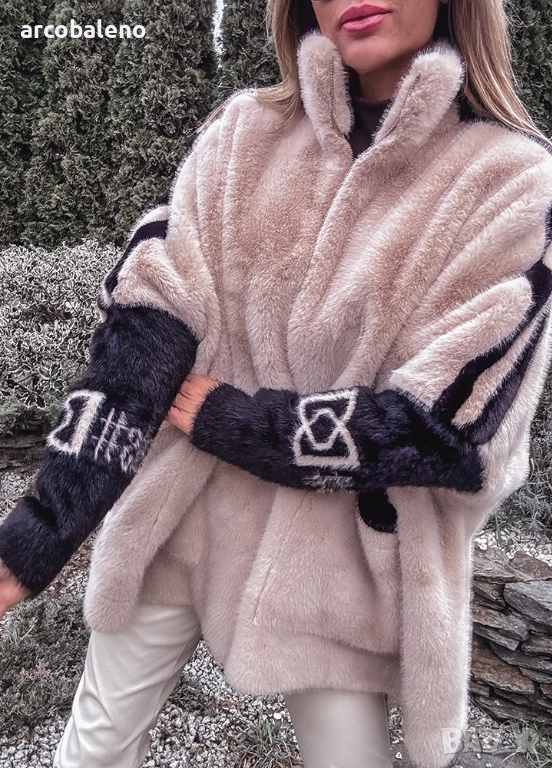 Бежово дамско кожено яке от премиум вълна с ангора