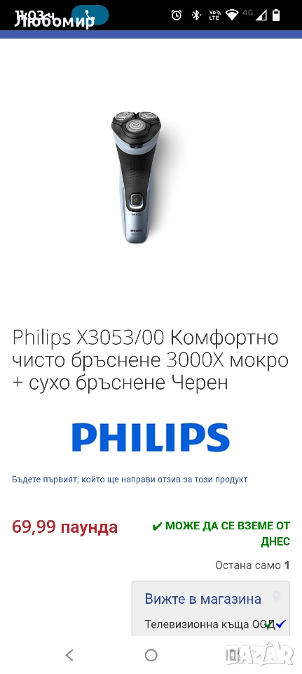 Напишете отзив заPhilips Series 3000X X3053/00 Въртяща се електрическа самобръсначка за лице с акумулаторна батерияи помогнете на други потребители!