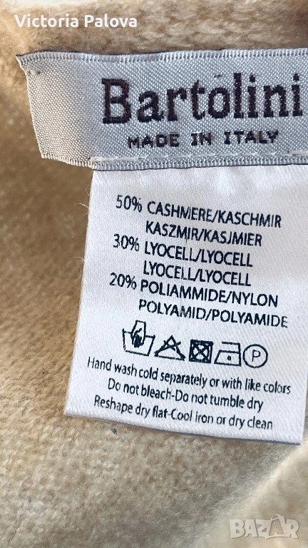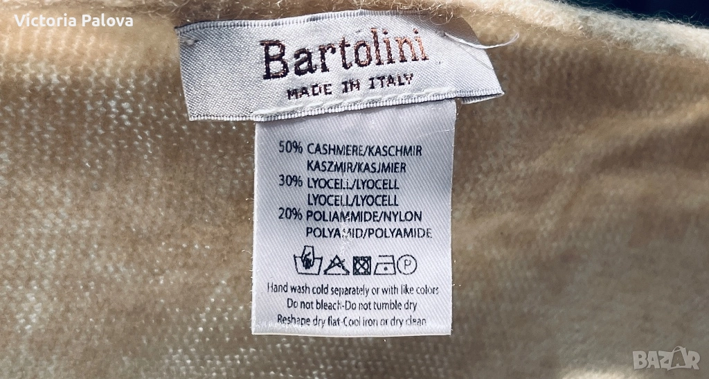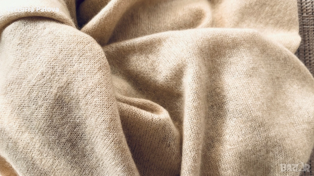 Идеален зимен аксесоар - мек като облак и универсален за всяко облекло. Оригинален италиански шал BARTOLINI - супер мек, топъл и огромен за максимален комфорт. Състав: 50% кашмир, 30% лиосел, 20% полиамид. Цвят топъл пясък, camel beige, най-модерният неутрален нюанс за сезона, пасва на всичко, от тренч до палто.