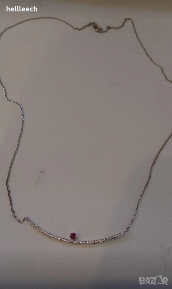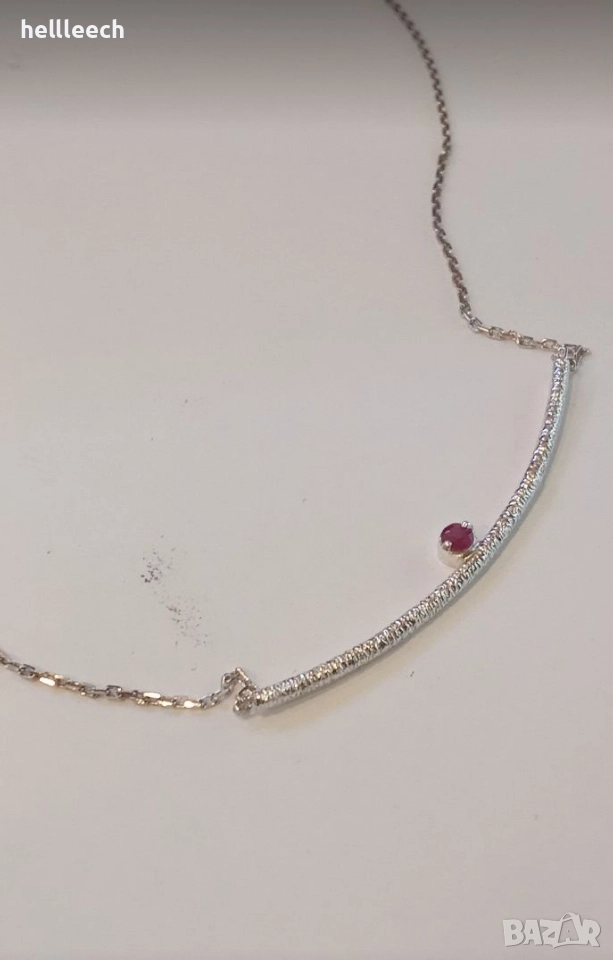 Колието е изработено от сребро проба 925. Дължината му е 52см. Камъкът е естествен рубин 2мм.