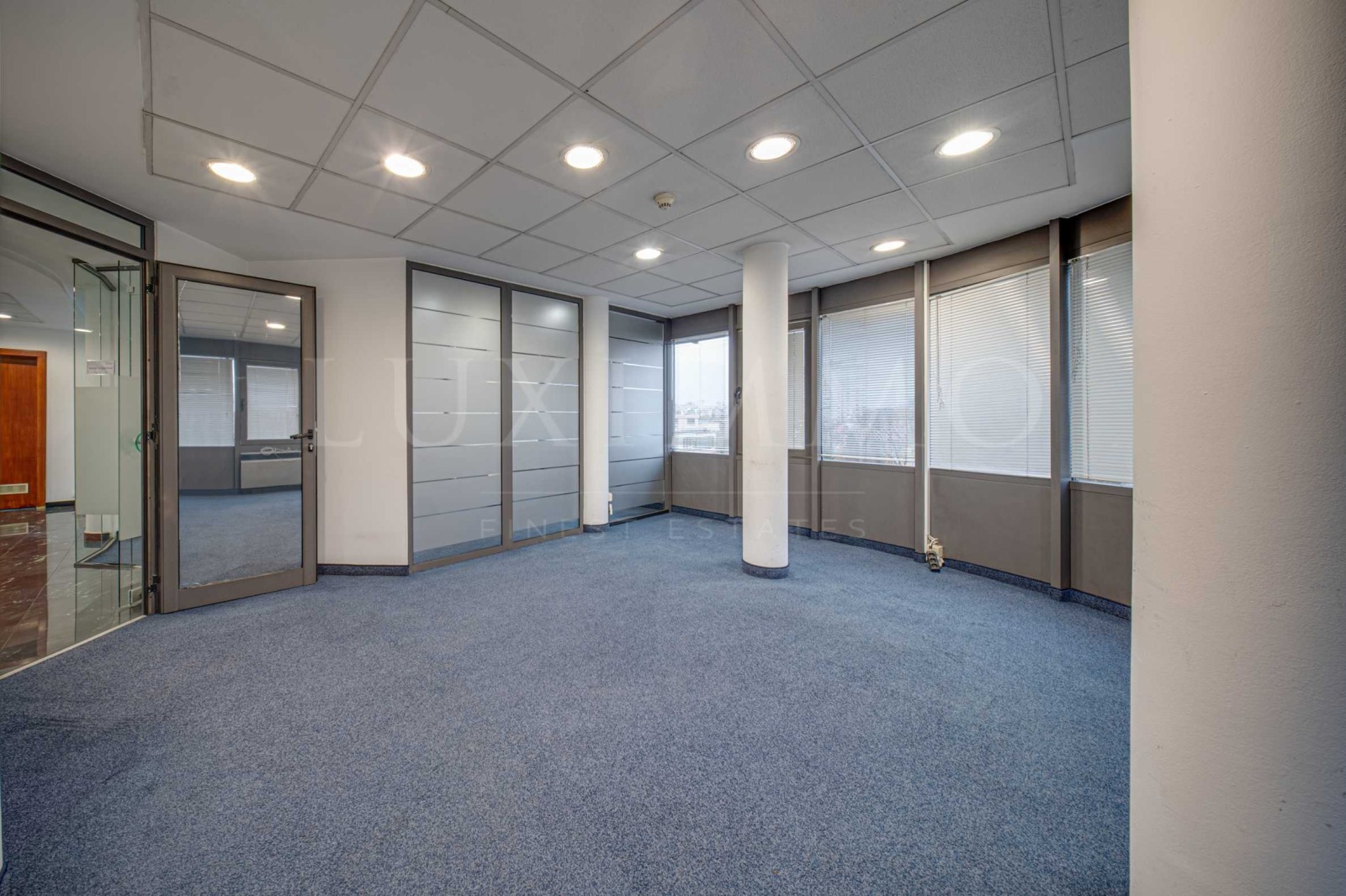 Офисът е с обща площ от 540 кв.м, разполага с функционално разпределение, което може да подлежи на промени: