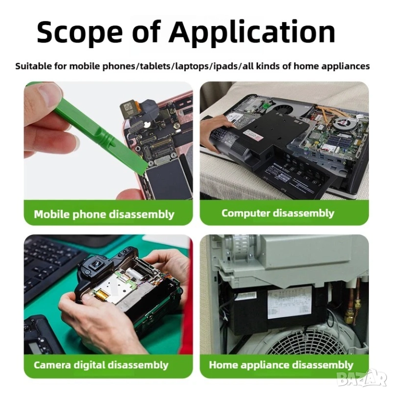 Приложения: Използват се за ремонт и отваряне на широк спектър от малки цифрови устройства, включително: