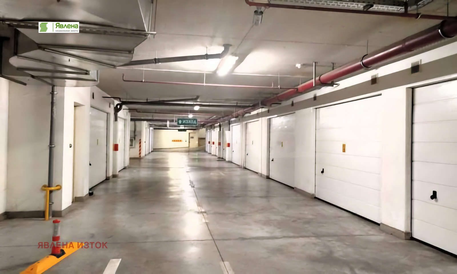 Явлена Изток дава под наем подземен гараж 23 квадратни метра в квартал Изток, комплекс Есте в близост до метростанция Жолио Кюри и Интерпред, КАТ. Гаражът се намира на -2-ро ниво, с удобен достъп и широка рампа за вход и изход. Сградата разполага с постоянна поддръжката на общите части, видеонаблюдение и 24 часова охраната. Гаражът е подходящ е за всички видове автомобили. Цялото ниво с гаражи е с вентилация, пожароизвестяване и система при пожар.
