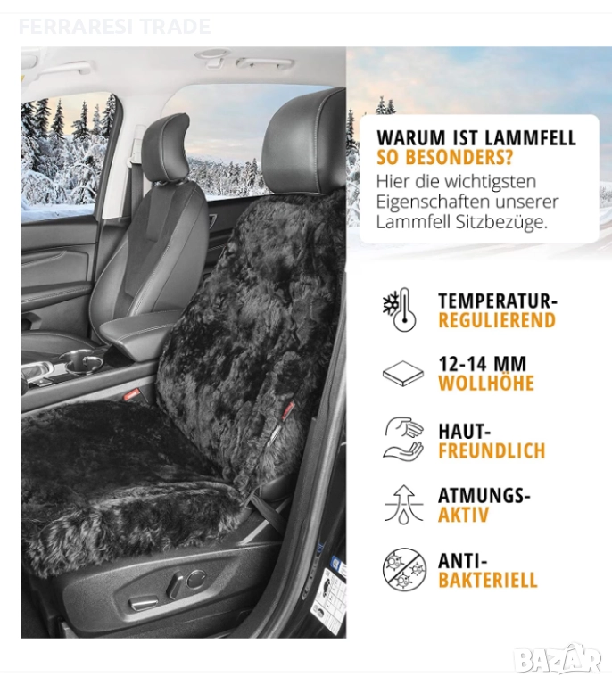 редната част на калъфа за автомобилна седалка WOLTU е изработена от 100% истинска овча вълна и има мека и пухкава повърхност с дебелина 18 см. Страните и гърбът са от изкуствена вълна (100% полиестер). Освен това този протектор от агнешка вълна е влагоустойчив, дишащ и осигурява по-добра топлоизолация.