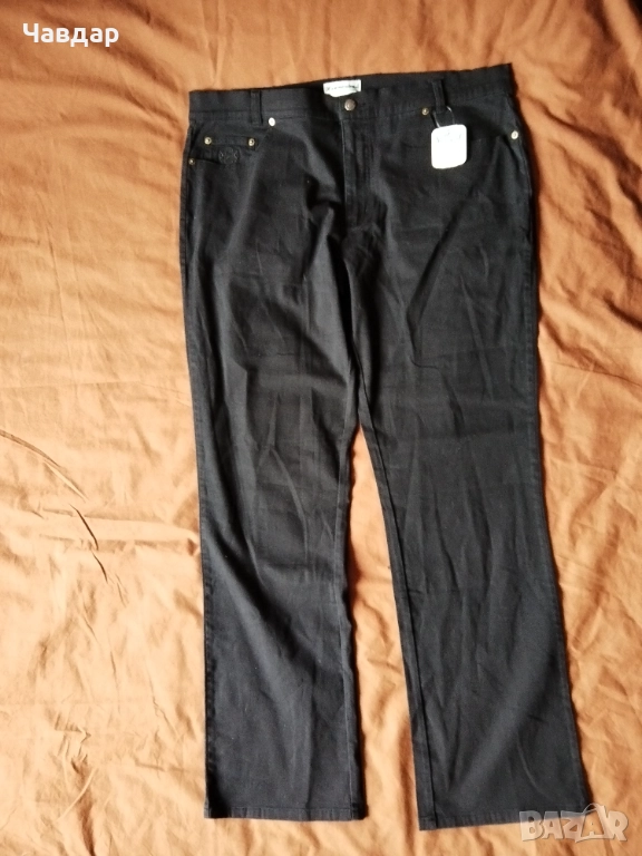 Класически мъжки дънки Hammershmid. Подходящи за пролетно-есенния сезон. Цвят черен, 96% памук и 4% еластан. Размер по етикет - 58 (XXL). Размери: талия – 100/108см. (еластан), крачоли: външна дължина – 112 см., вътрешна – 86 см., широчина на крачола (долу) - 24 см. Състояние - НОВИ с ЕТИКЕТ. Цена - 25 евро (не подлежи на коментар).