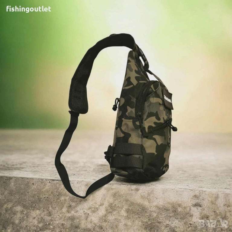 Удобна и компактна спининг чанта подходяща и за спининг риболов. . Снабдена е с регулируем ремък за носене през рамо а към нея получавате и три кутии . Една за мухи и микроклатущки , една за воблери и една за блесни . Чантат е снабдена с :