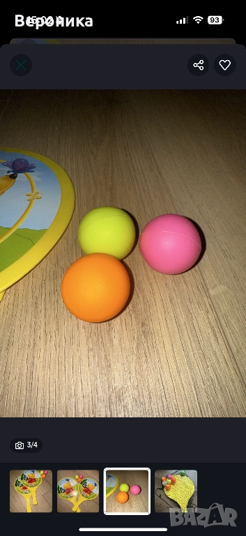 Почти не са използвани, забавна игра за малки и големи. Комплектът се състои от 2 хилки и 3 топчета и мрежичка в която да си ги носите