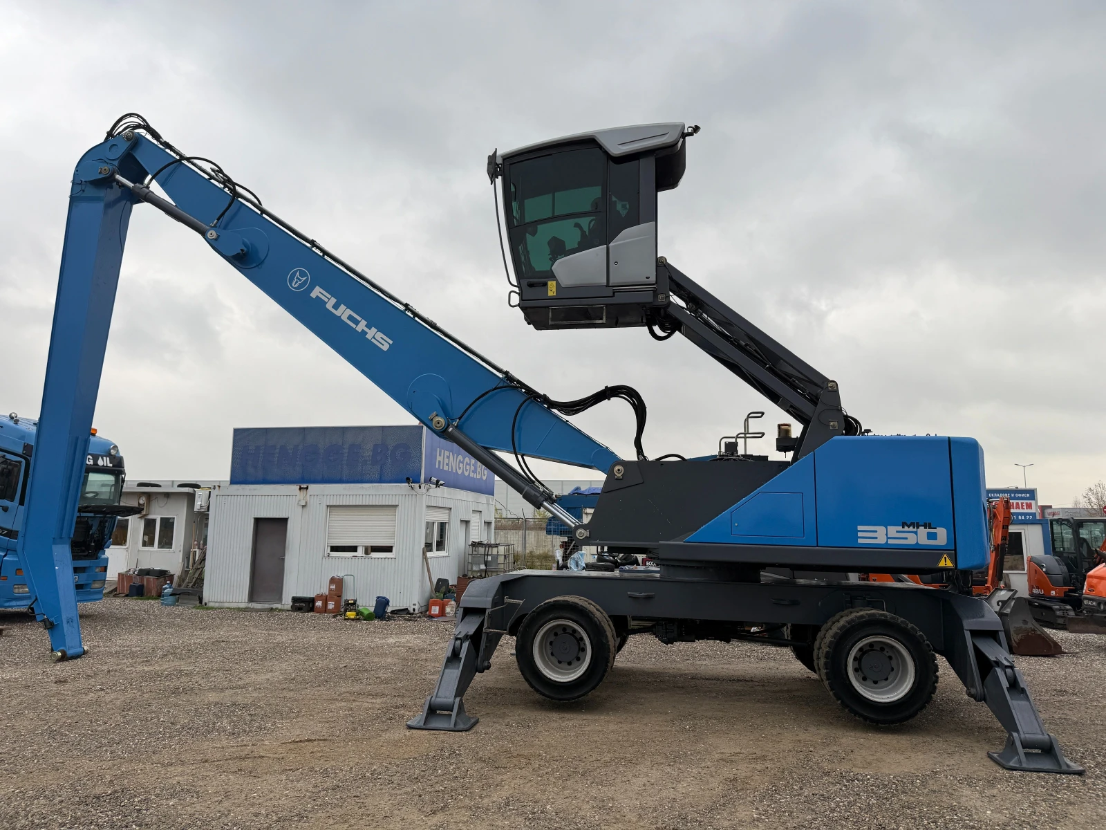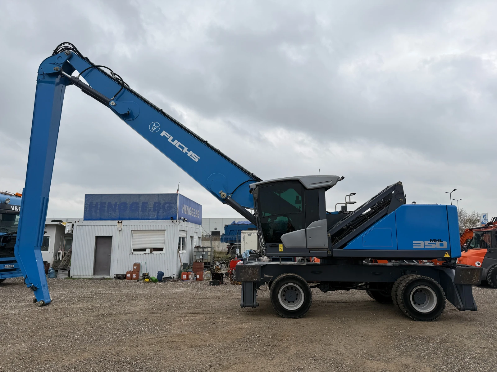 Индустриален багер Fuchs MHL 350, 8000 моточаса, 250кс, 35000кг оперативно тегло, 2020г, магнитен генератор, камери за задно и странично виждане, климатик, нов внос Германия, напълно обслужен, сервизна книжка, отлично състояние