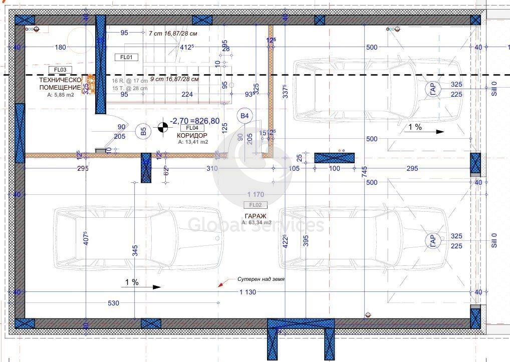 Сутерен гараж за 3 коли, техн. помещение, малко складче.