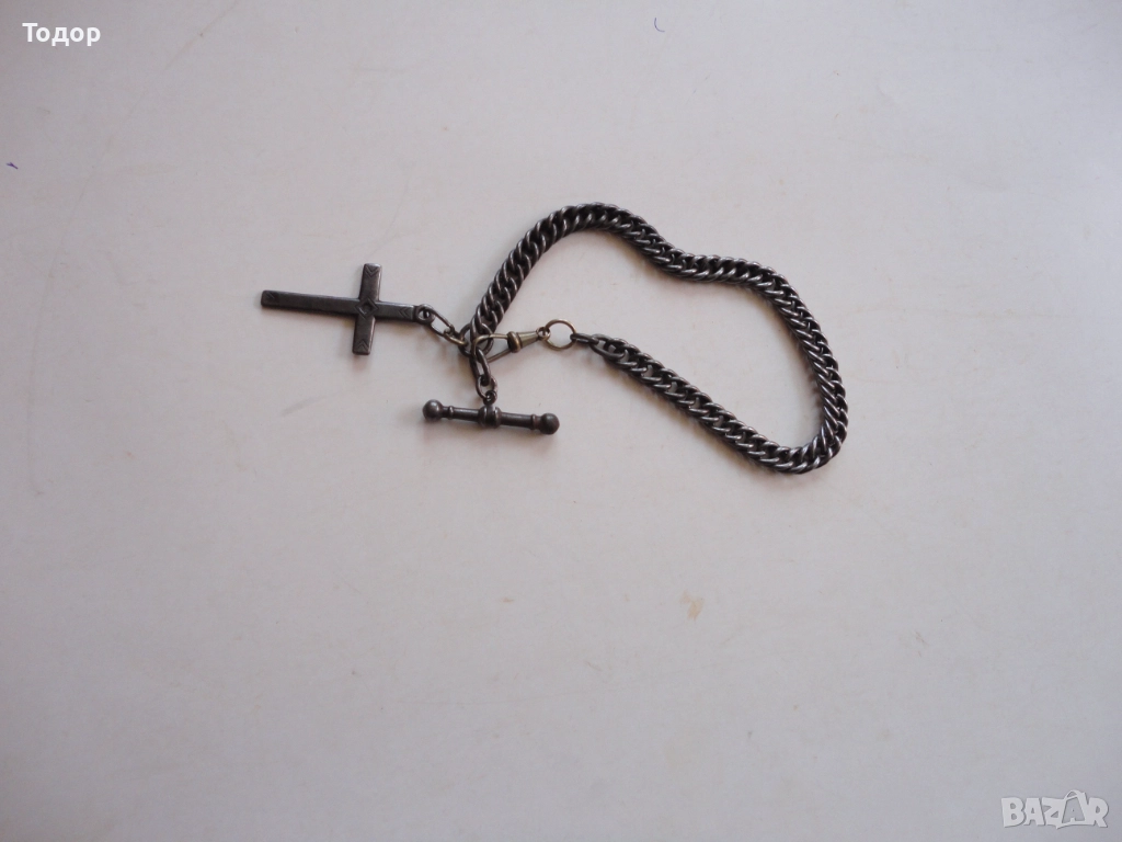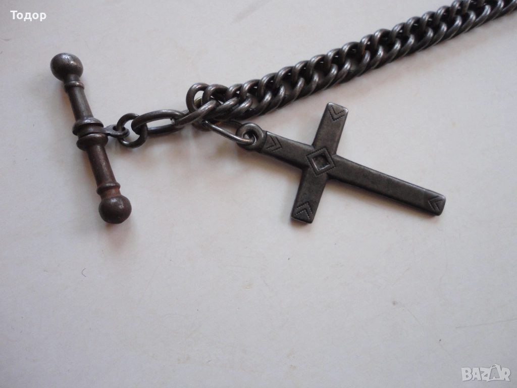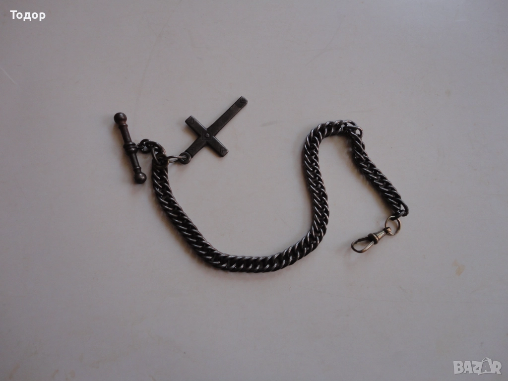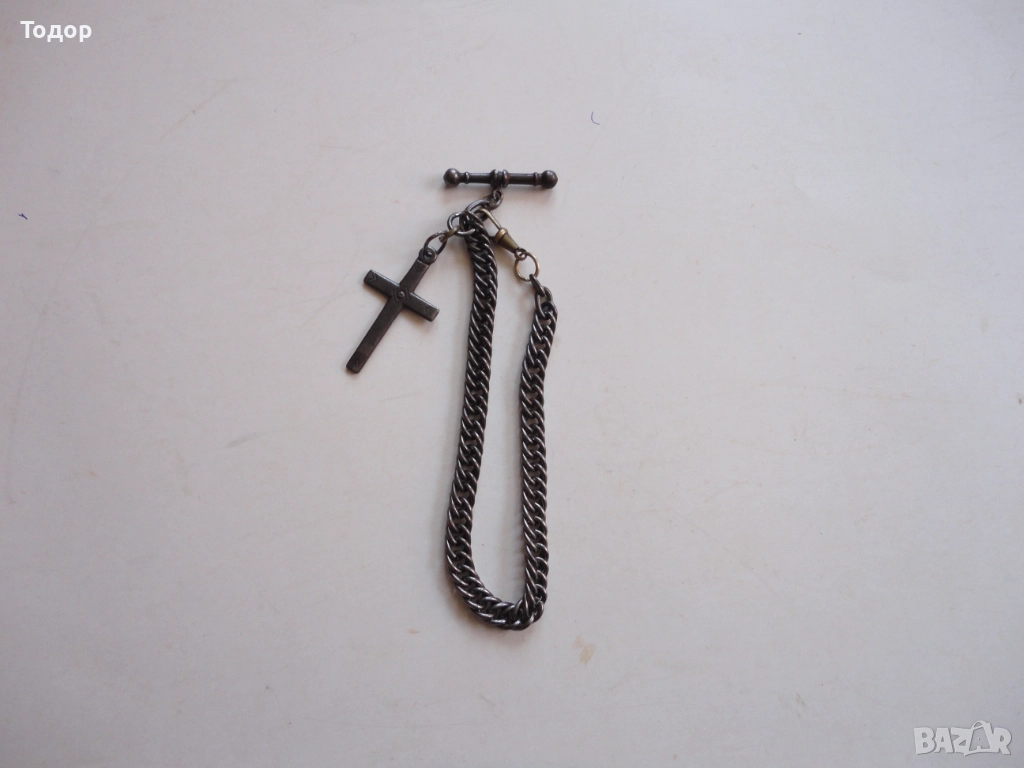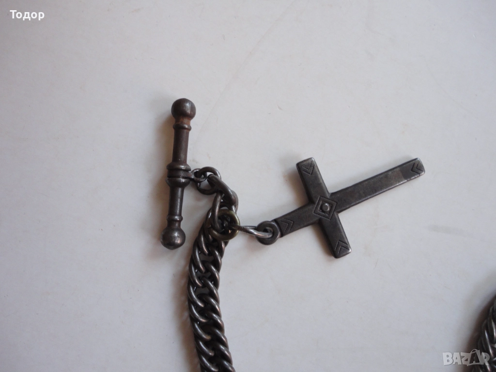 Старинен кюстек верижка за джобен часовник с кръст → Обява 52671575