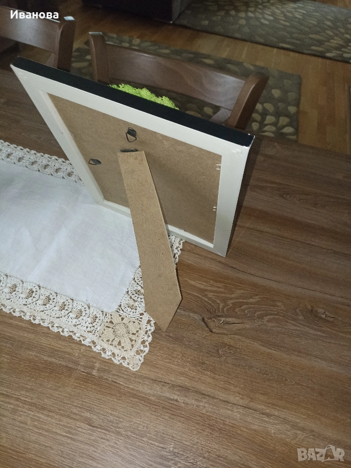 Красив декоративен панел с мъхест дървовиден дизайн в скандинавски стил. Зелените нюанси на мъха създават впечатляващ ефект и придават естествен вид на предмета. Рамката от дърво допълва визията и придава топлота. Подходящ за украса на дома или офиса.