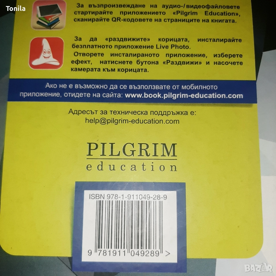 Английско -български речник. Сканира се кода и се гледат видео уроци.