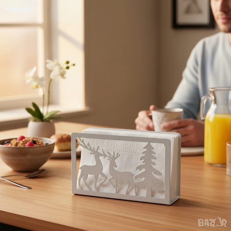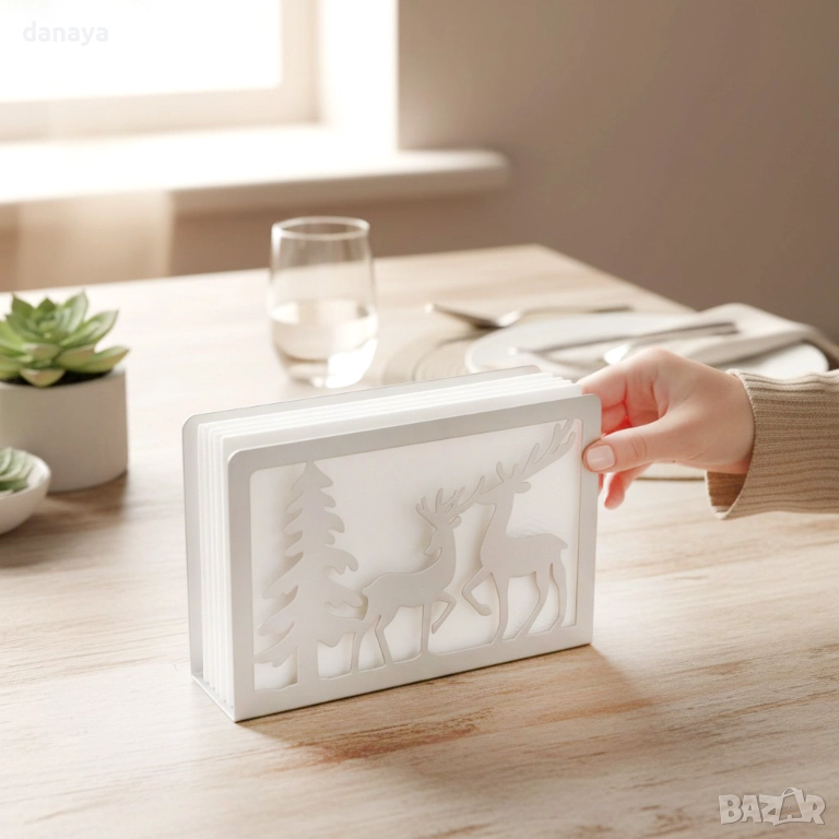 Стабилната конструкция поддържа салфетките подредени, а неутралният бял цвят лесно се комбинира с всякаква празнична украса. Подходящ е за ежедневна употреба през декември, за коледни вечери, семейни тържества и красиво подредена сервировка.