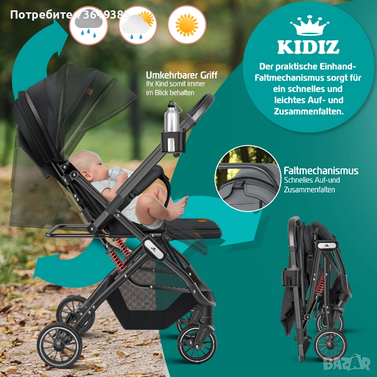 Обратимата дръжка ви позволява да наблюдавате детето независимо в коя посока бутате количката.