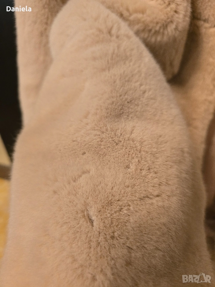 Красиво, меко и пухкаво. Размер: ХS Кройката на палтото позволява да се ползва и за S и за M размер.