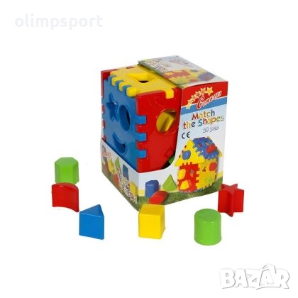Конструктор, сортер Cimbari, 29 части. Игра „Търси и намери“, която подпомага развитието на децата. Конструкторът е с формата на къщичка, която е прорязана с девет различни форми, в които се промушват елементите. Стимулира координацията, умението за намиране на решение чрез проба и грешка, научаването на формите, изграждането на сръчност, умения за подреждане и сортиране. Размери на играчката – 19х13.5х23 см. Размери на опаковката – 14х14х18 см. Подходяща за деца на възраст над 18 месеца. Материал – PVC. Тегло – 420 г.
