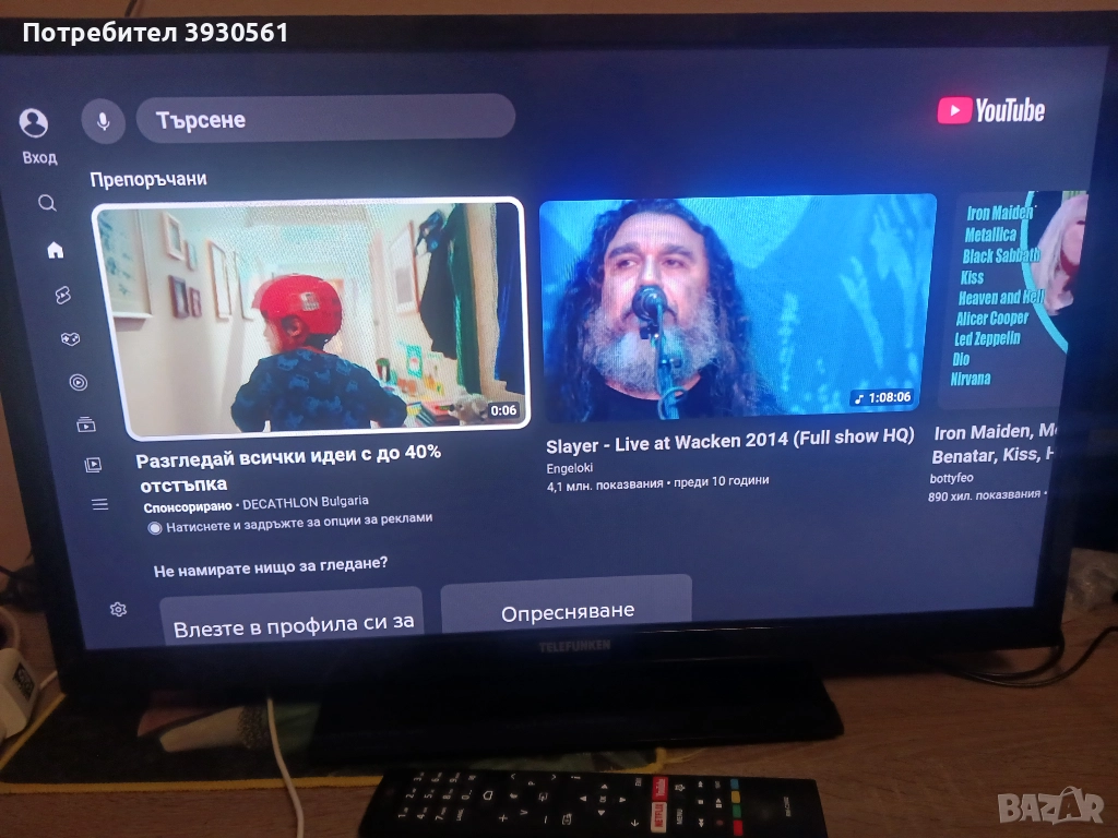Telefunken телевизор 24ha6001 n андроид оригинално дистанционно.Има кристална картина.