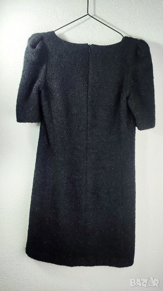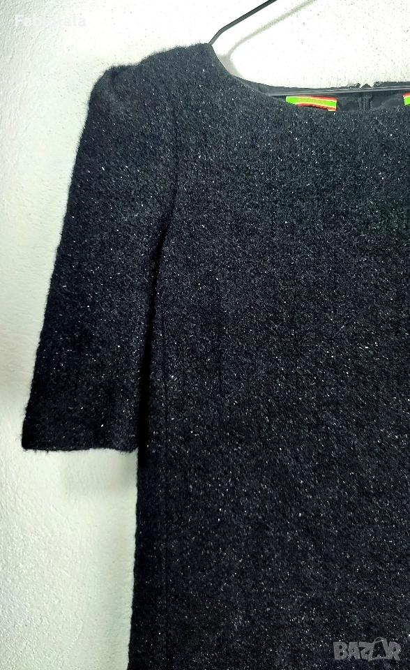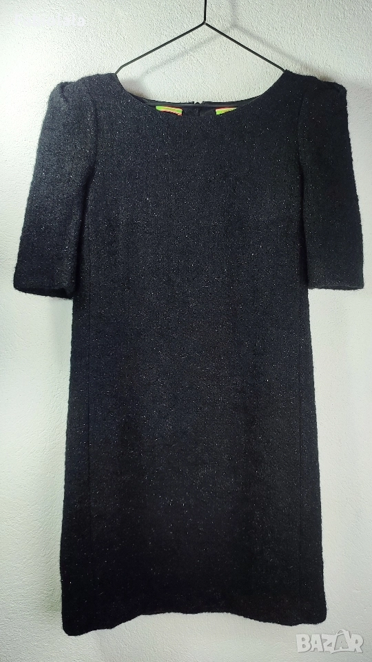 Топла вълнена рокля (50% памук) с брокатена подплата и дълъг цип.
