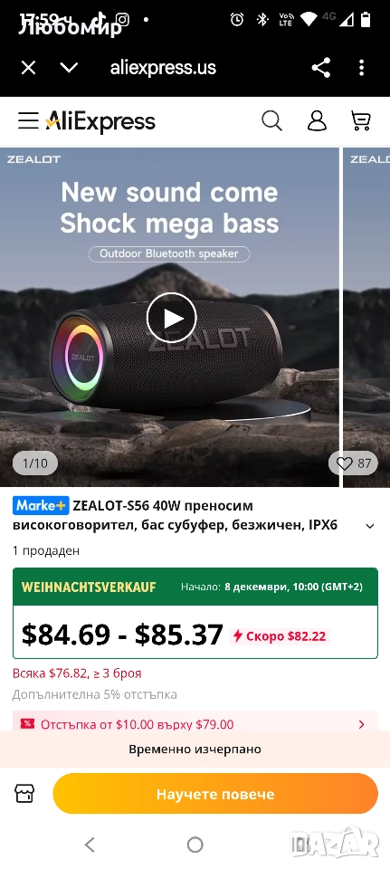 ZEALOT Bluetooth високоговорител 40W преносим с BassUp технология, водоустойчив високоговорител IP67 безжичен стерео еквалайзер, външен високоговорител за парти, плаж, къмпинг, Rgali.ПРЕВЪЗХОДНО КАЧЕСТВО НА ЗВУКА Подобрете звуковото си изживяване с Bluetooth високоговорителите S56, които осигуряват мощен и завладяващ звук, изпълващ цялата стая. Независимо дали слушате музика, филми или игри, кристално чистият звук и дълбокият бас гарантират завладяващо слушателско изживяване.