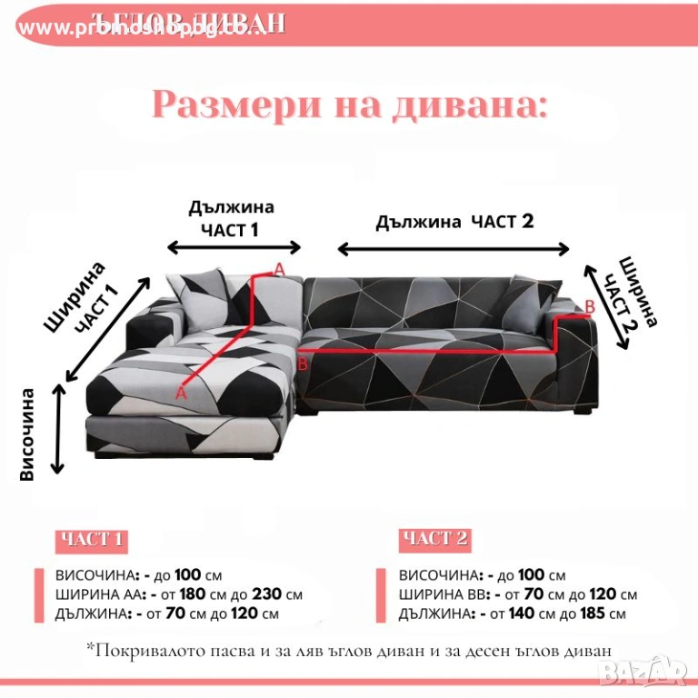 Покривалото пасва и за ляв ъглов диван и за десен ъглов диван.