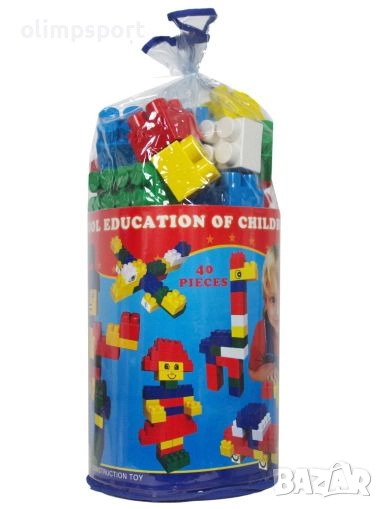Конструктор - строител, състоящ се от 20 едри пластмасови блокчета, събрани в здрава и удобна за прибиране чанта. Комплектът включва и лепенки с картинки на животни, стени, покриви, прозорци за украса на блокчетата. Частите са едри и удобни за хващане за големи и малки деца. Сглобяват се лесно и без усилие. Игрите за „строене” стимулират въображението, пространственото мислене и концентрацията на детето. Блокчетата са в различни цветове, което помага на децата играейки да научат цветовете. Конструкторът е с тегло 800 гр и размери на опаковката 19х13х29 см. Предназначен е за деца над 3 години.