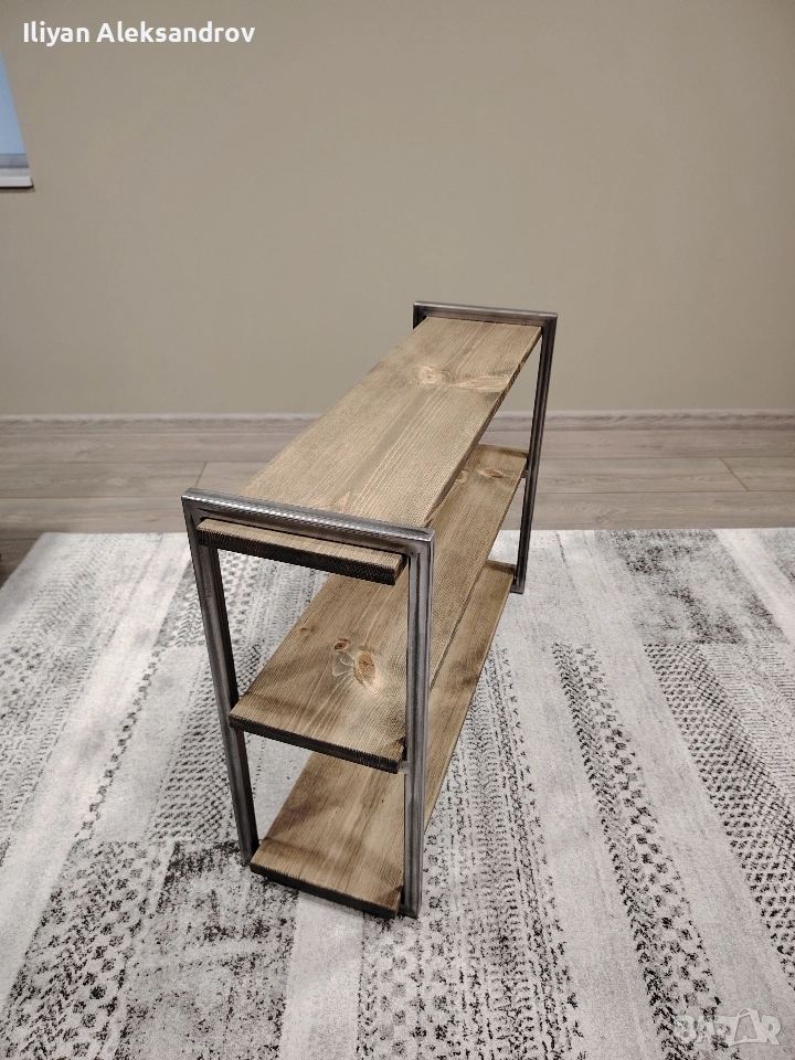 ✅Материали:Конструкцията е метална, шлайфана и лакирана, за да запази суровия си вид. Рафтовете са дървени(чам), обработени с байцово масло и полирани с пчелен восък. ✅Размери:височина56/ширина76/дълбочина24/долен рафт вис. 23,5/горен рафт вис. 21,5 см #индустриаленстил #рустик #handmade