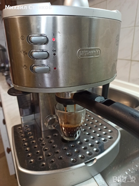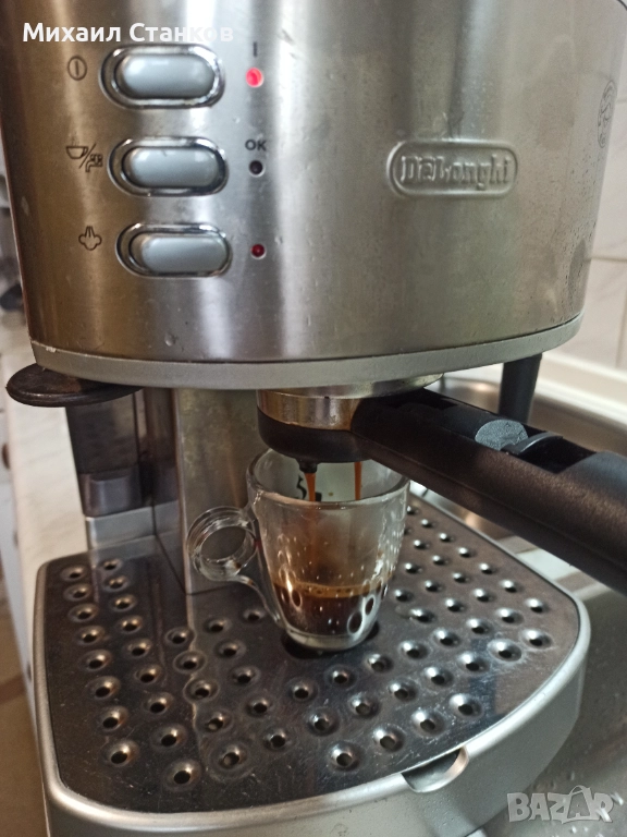 Кафе машина Делонги с ръкохватка крема диск работи перфектно и прави супер кафе с каймак