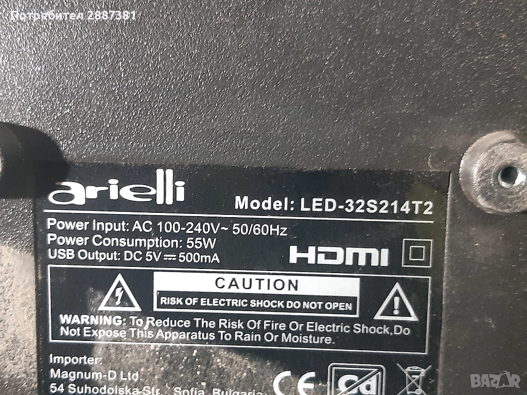 Arieli LED-32S214T2 със дисплей LQ315T3HC64BD