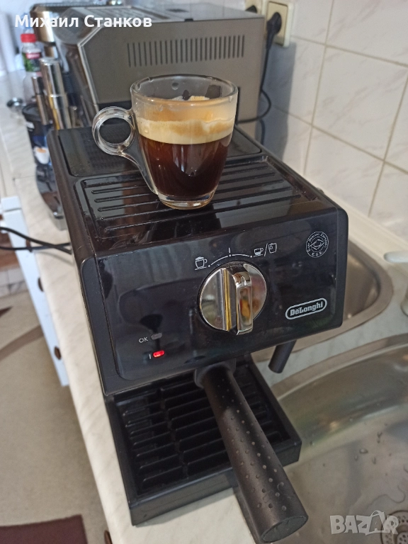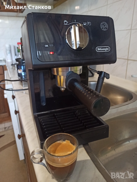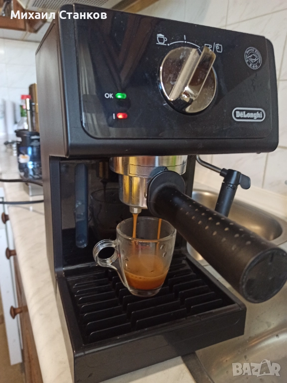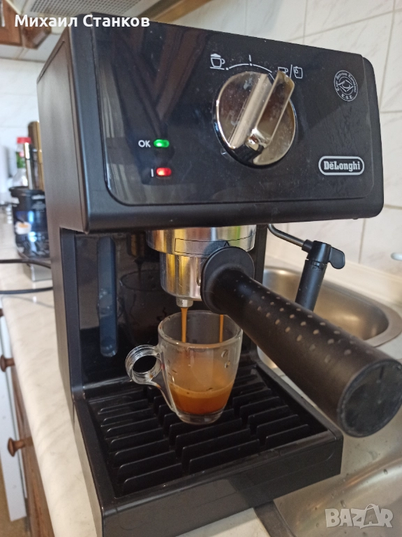 Кафе машина Делонги с ръкохватка крема диск работи перфектно и прави супер кафе с каймак