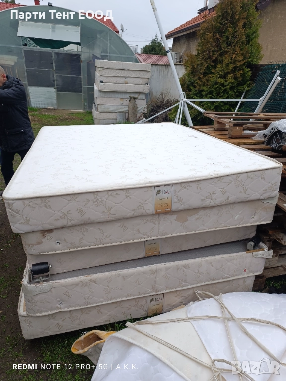 Продавам употребявани професионални тапицирани основи за матраци /хотелска линия/, използват се без подматрачна рамка. Всъщност това е единично легло или спалня, върху която се поставя матрака. Френско легло. Има единични с размер 110/190 и двойните са с размер 160/200. Основите/леглата имат и крака с различни височини, но може да използват и без. Могат да бъдат претапицирани, да се сложи чаршаф с ластик или да се използват така. Единичното легло/основа е с цена 7 евро. Двойното легло/основа/спалня е с цена 10 евро. Намират се в София. Взимат се от място, но разполагам и с транспорт, в рамките на гр.София е 30 евро, извън гр.София е по 35 евро цента на км в посока, но минимум 50 евро.