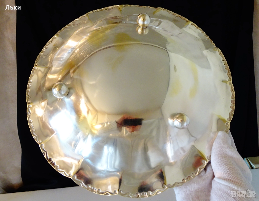 ръчна изработка от високо качествен бронз,дебело посребрена с висока проба сребро.Периферията