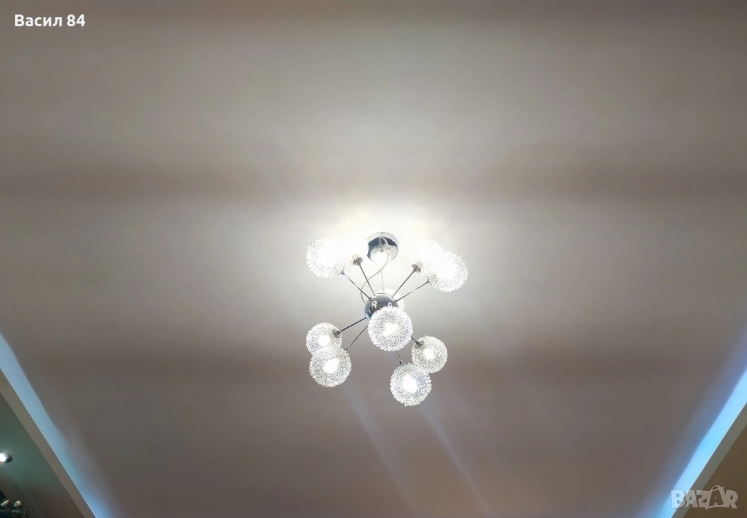 Полипея е с 10 стъклени топки. Продавам го със кружките. Перфектен и стилен. Много ефектен. Модерен дизайн. Цената е съобразена с това, че едната топка е влязла по навътре до фасунгата.