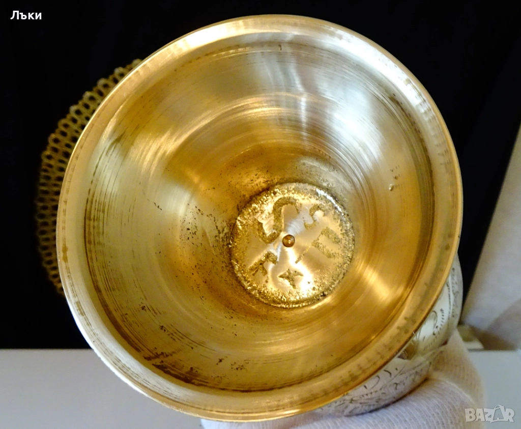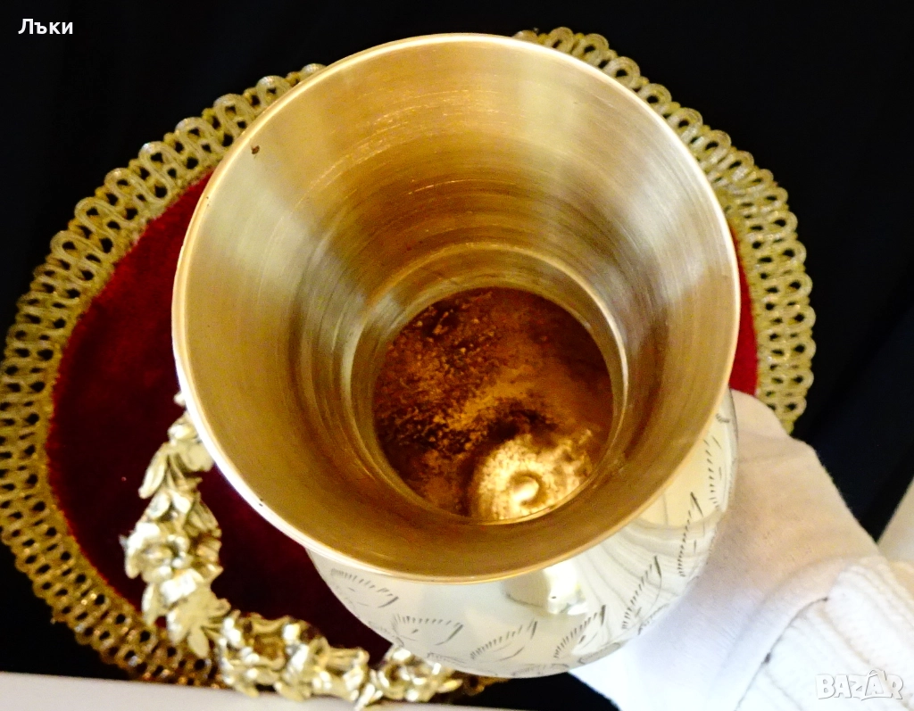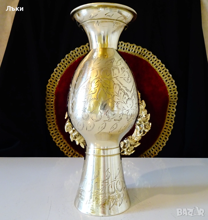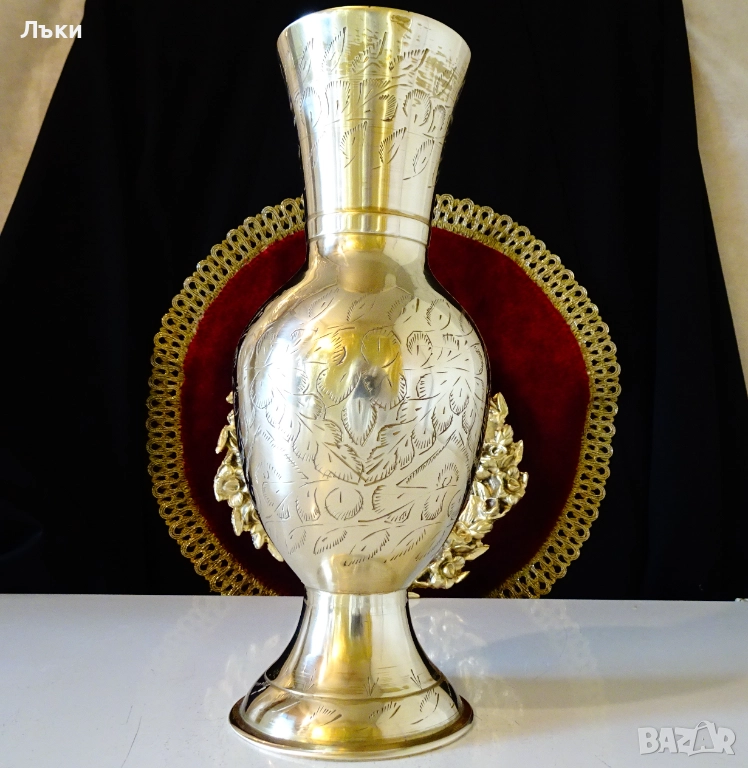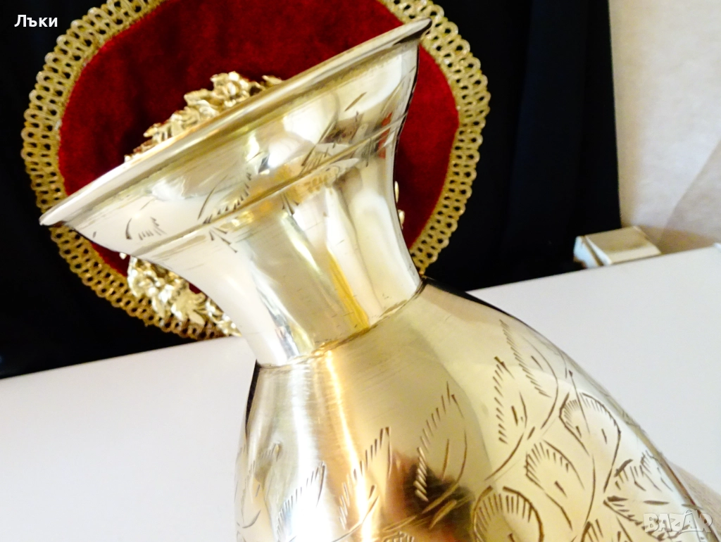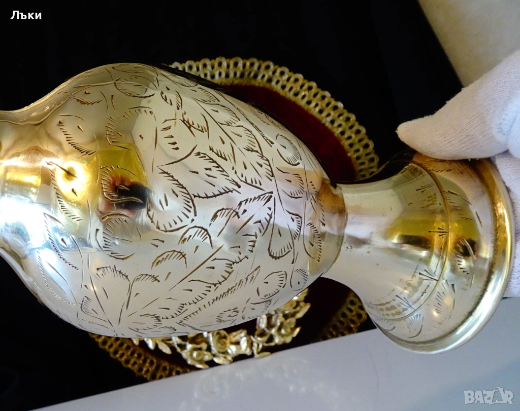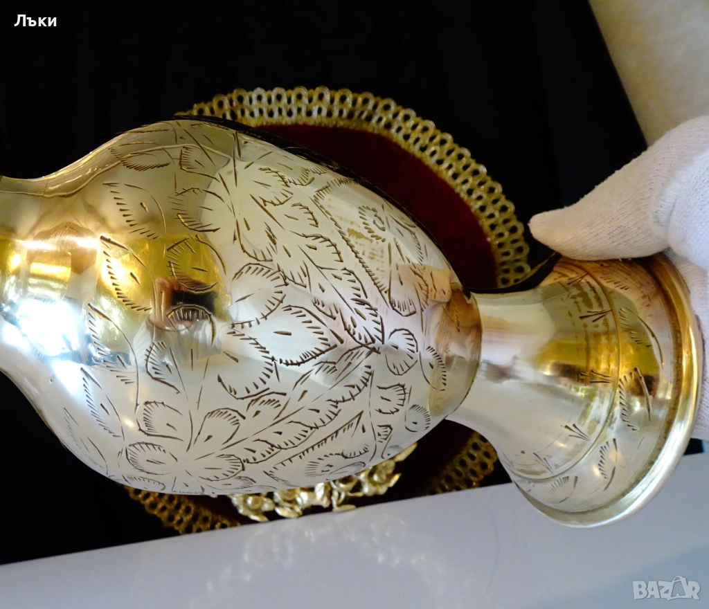 качествен бронз със златен блясък.Декорирана с разкошни релефно гравирани