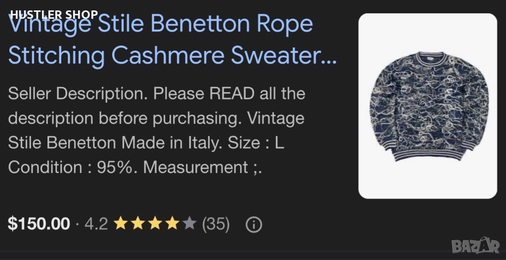 Мъжки кашмирен пуловер VINTAGE STILE BENETTON. Размер М → Обява 52674736