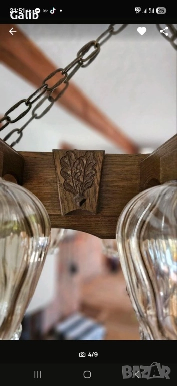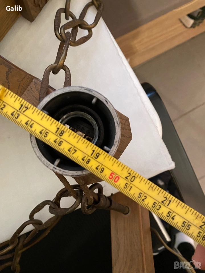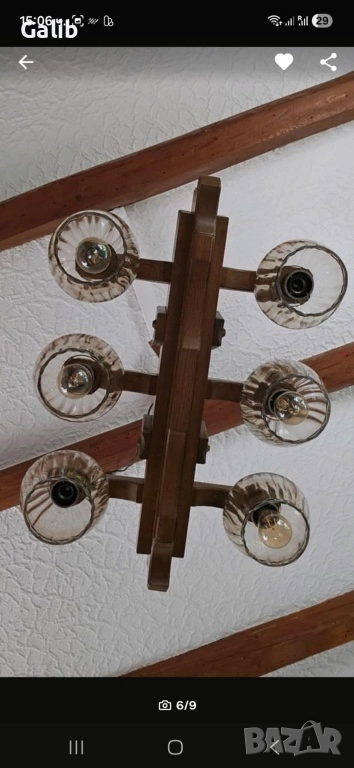 Красива масивна дървена лампа, абажур 6 светлини, немско производство → Обява 52674903