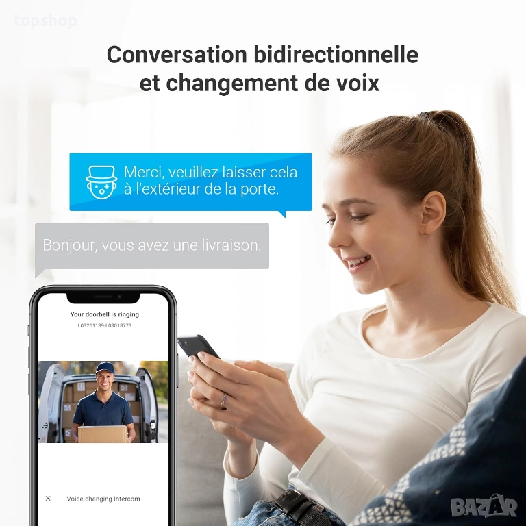 Функция за промяна на гласа, за да защитите личното си пространство.