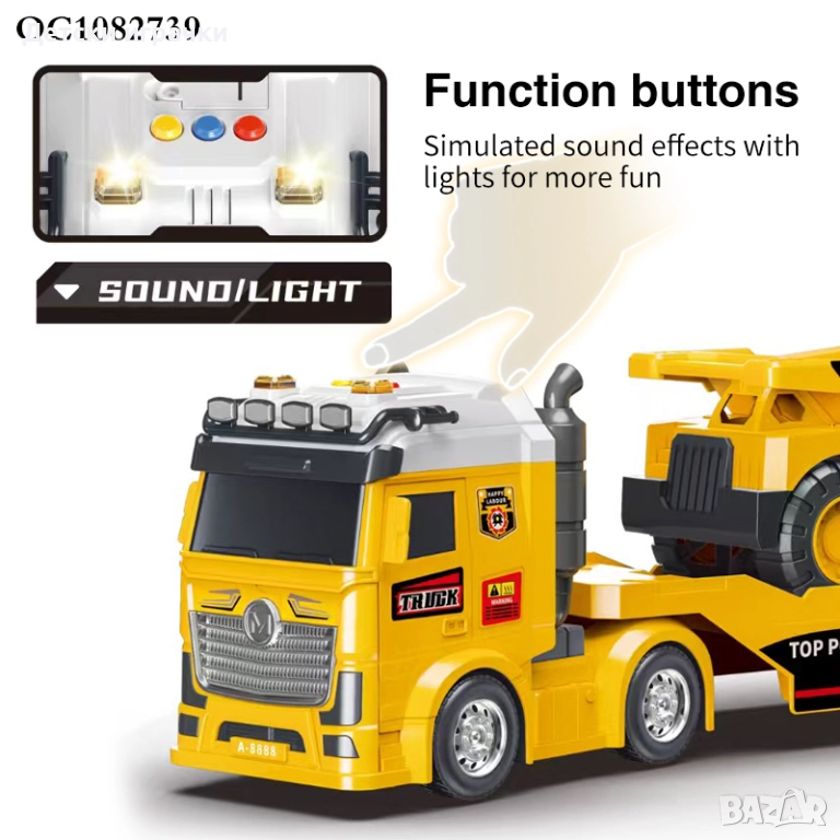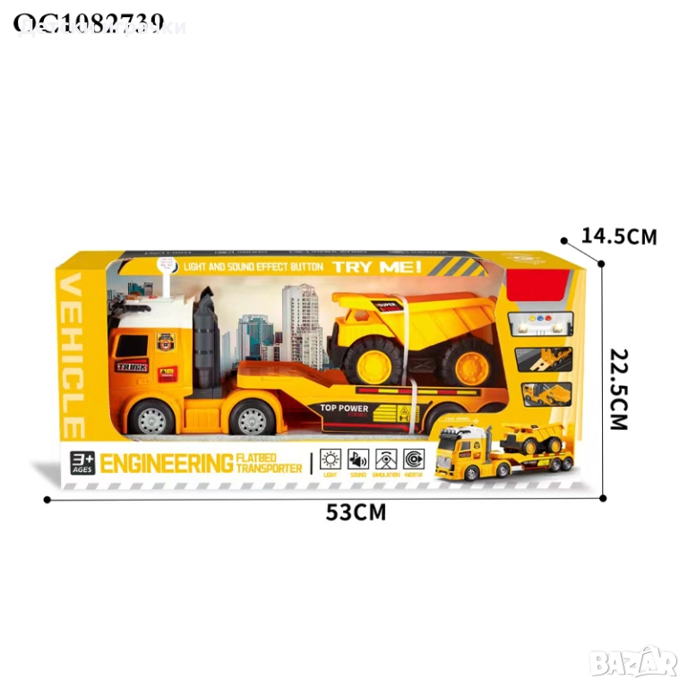 Автовоз Тир с платформа и самосвал, със светлини и звуци
