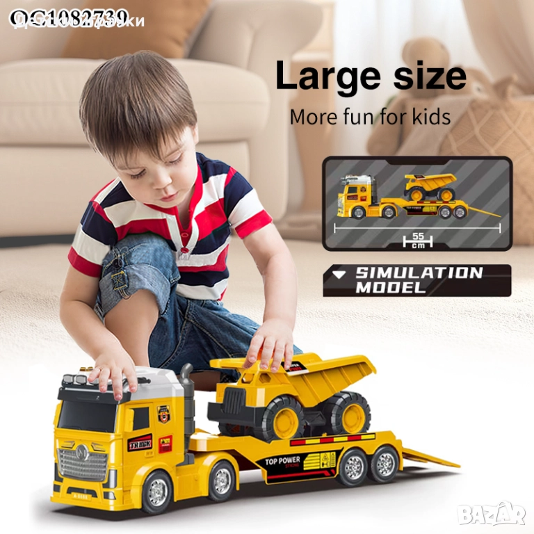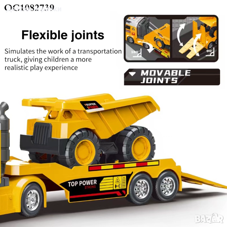 Тир влекач с платформа (Engineering Flatbed Transporterи строителна машина.
