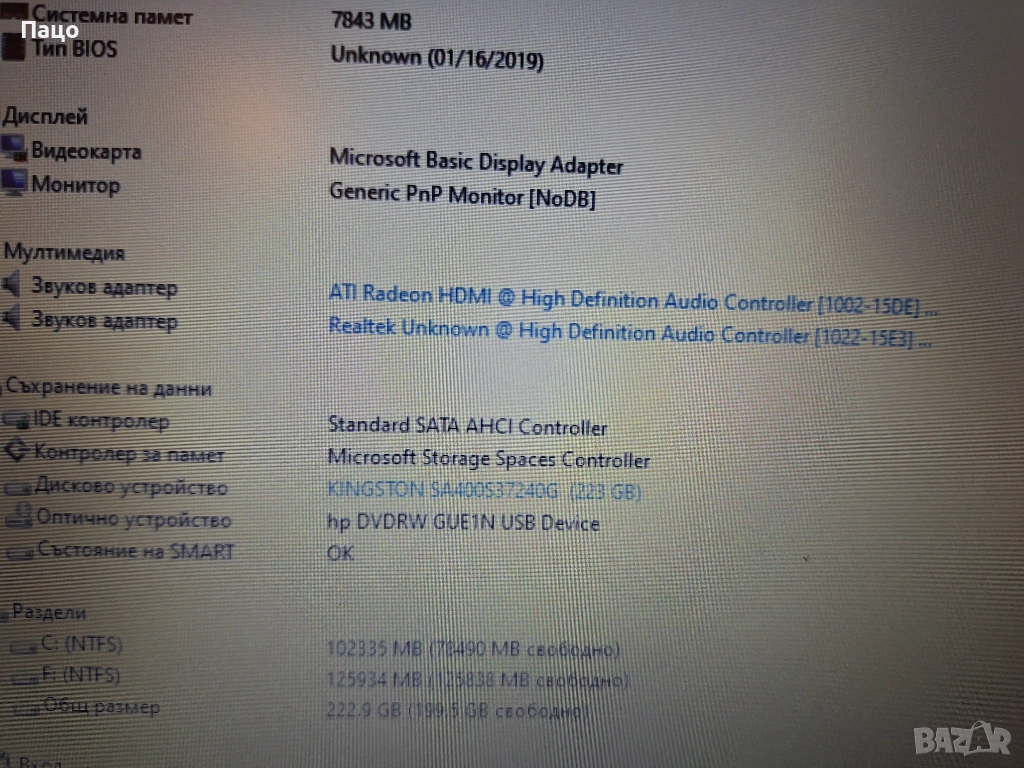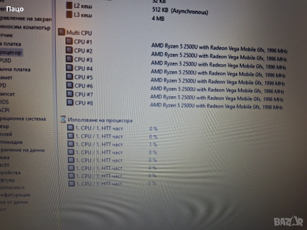 Вграден графичен процесор AMD Radeon Vega 8 Graphics/Батеричта е само на 9 процента износване,има снимки/С опция преглед и тест//Цената е Твърда,символична